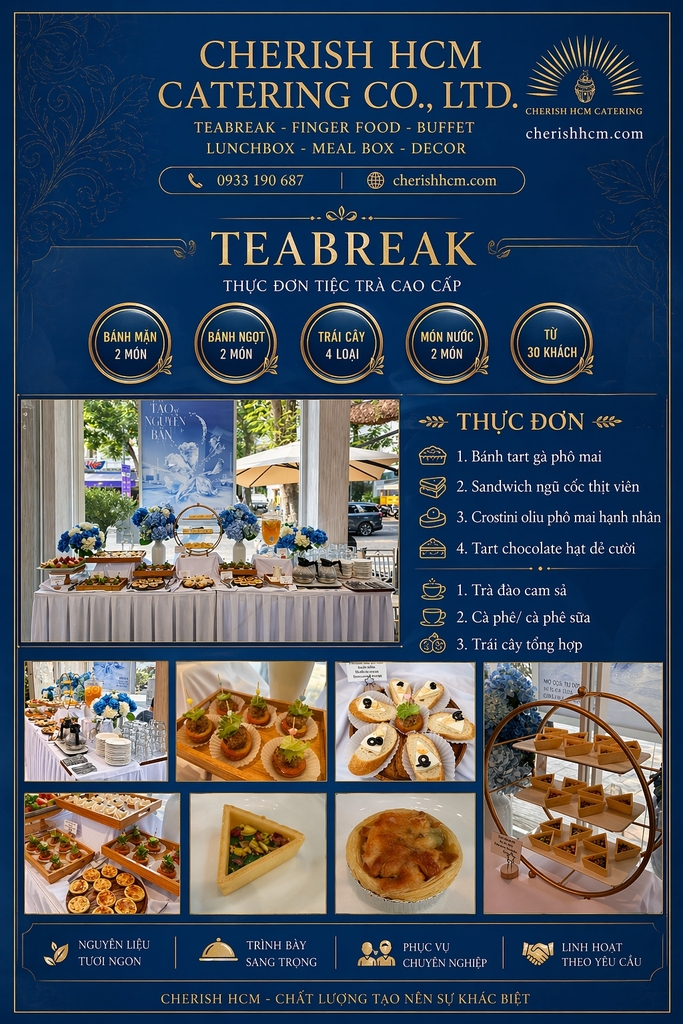 16426 Tiệc teabreak Join us - Menu 2 bánh mặn, 2 bánh ngọt, Trái cây, 2 nước Phù hợp từ 30 khách