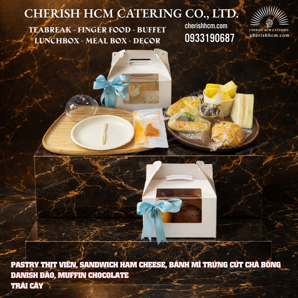 21324 Teabreak box 3 bánh mặn 2 bánh ngọt 1 trái cây