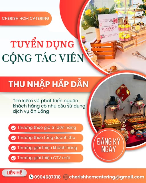 Gửi CV ứng tuyển gửi về email: cherishhcmcatering@gmail.com hoặc liên hệ số: 0904 687 018