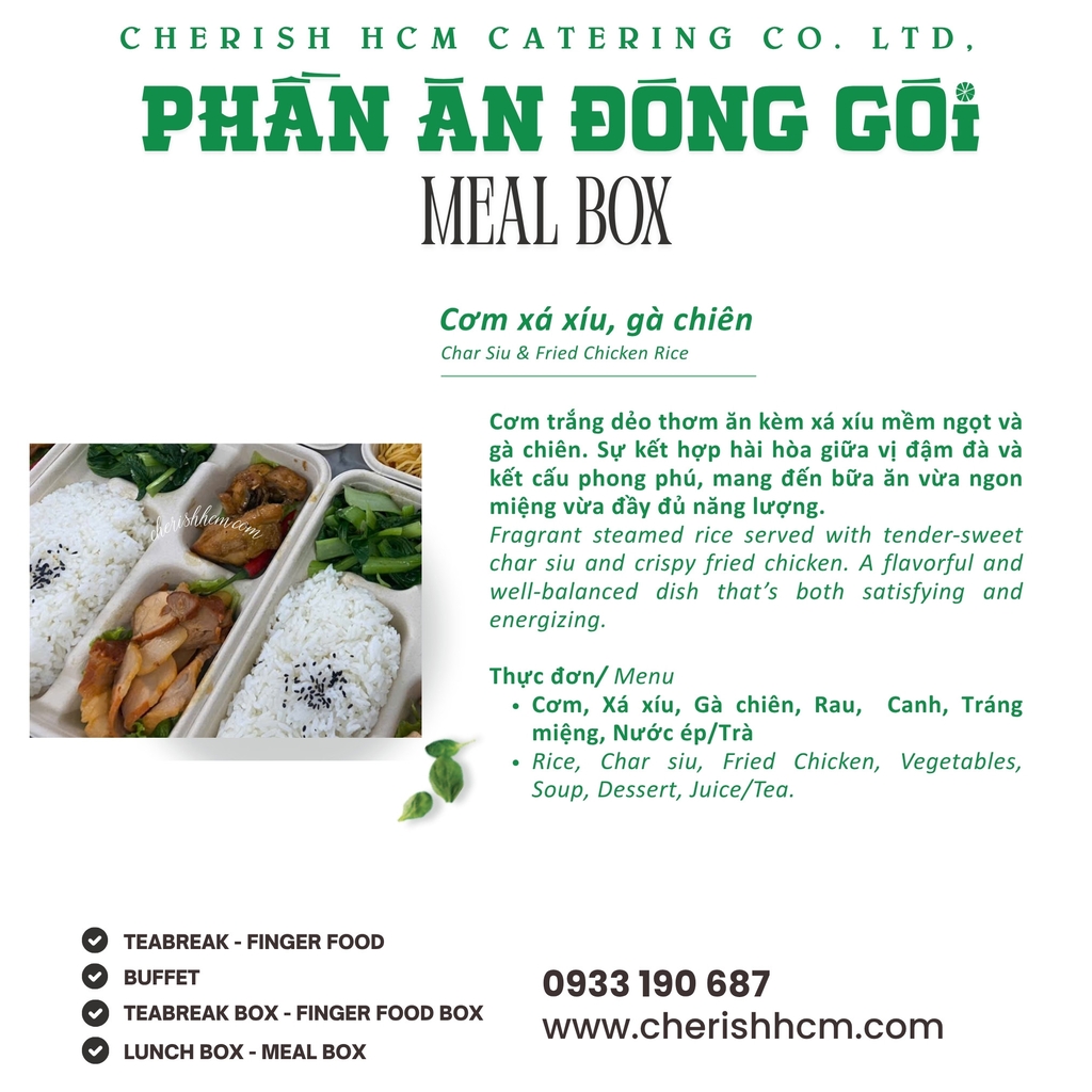 Lunch Box Cơm xá xíu, gà chiên/Char Siu and Fried Chicken with Rice