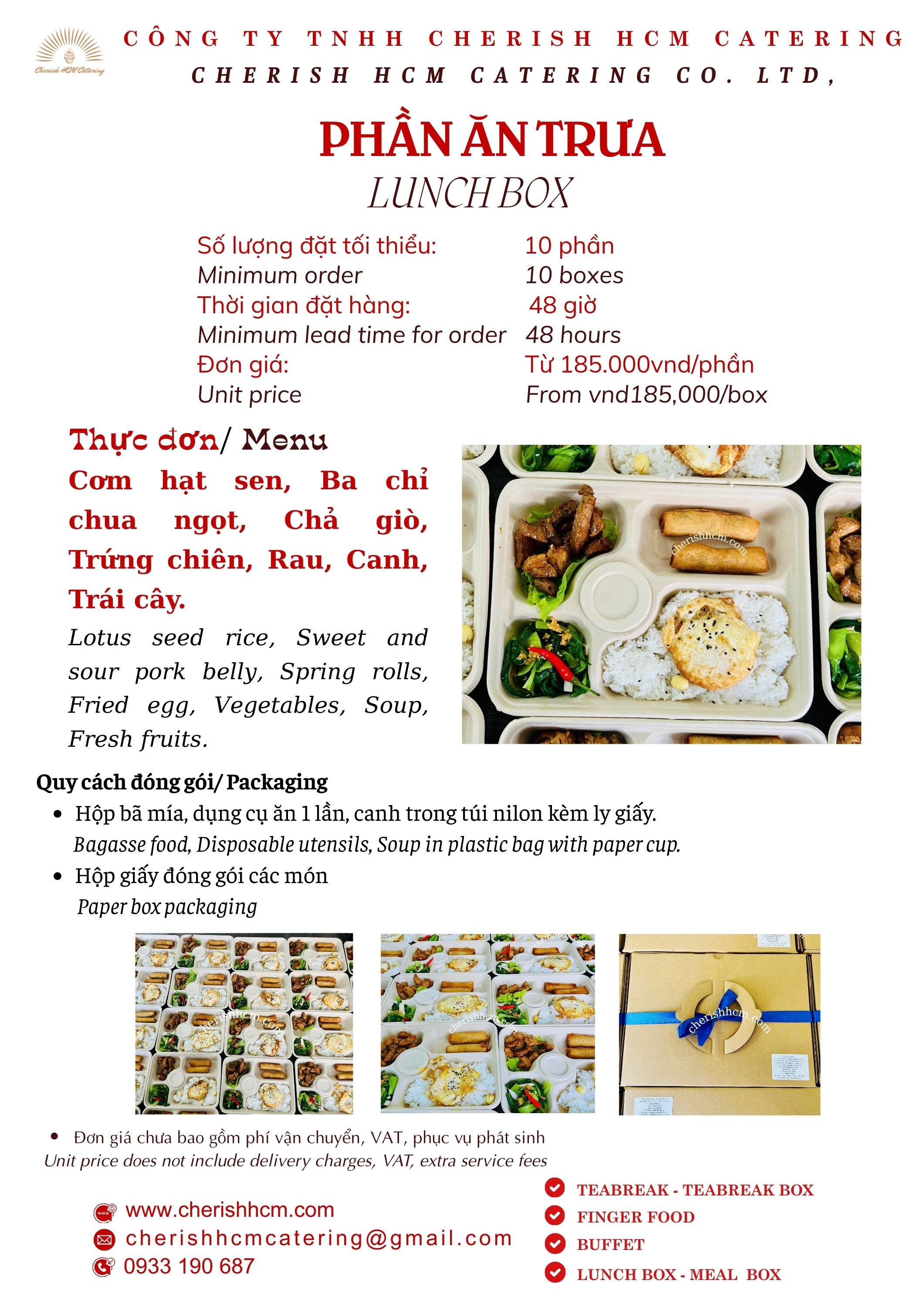 Lunch box Stamina - Cơm ba chỉ chua ngọt, Chả giò/Spring rolls, sweet and sour pork belly with Rice
