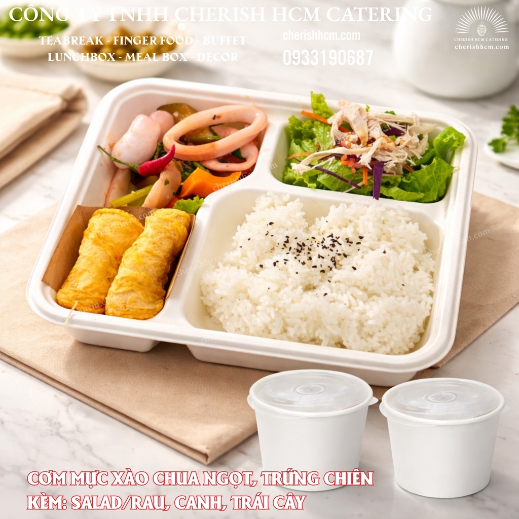 131225 Cơm mực xào chua ngọt, trứng chiên/ Steamed rice with sweet and sour stir-fried squid and Pan-fried egg