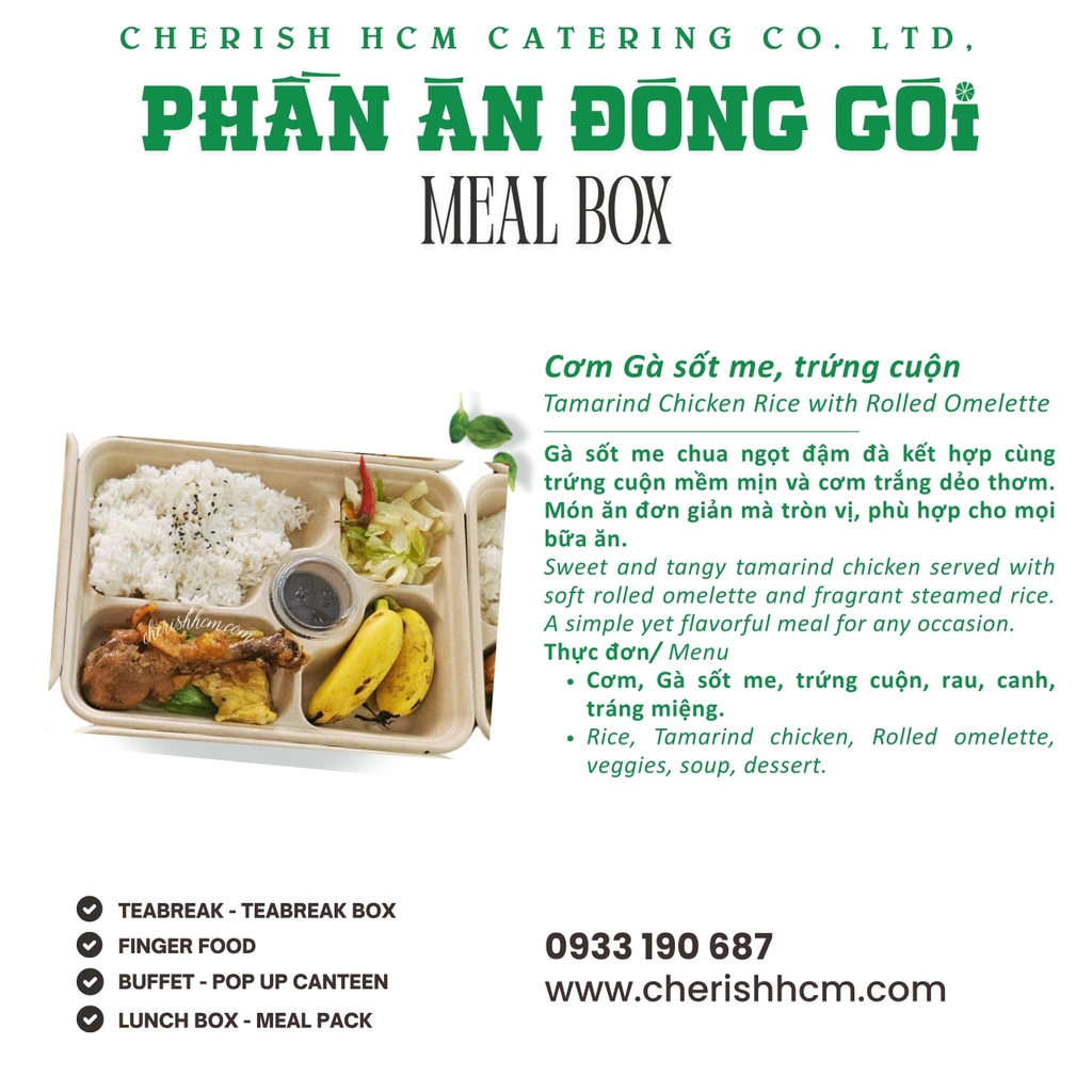 Meal box Cơm gà sốt me, trứng cuộn/Tamarind Chicken Rice with Rolled Omelette