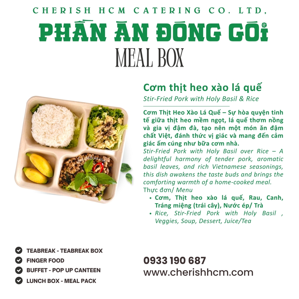 Meal box - Cơm thịt heo xào lá quế/Stir-Fried Pork with Holy Basil and Rice