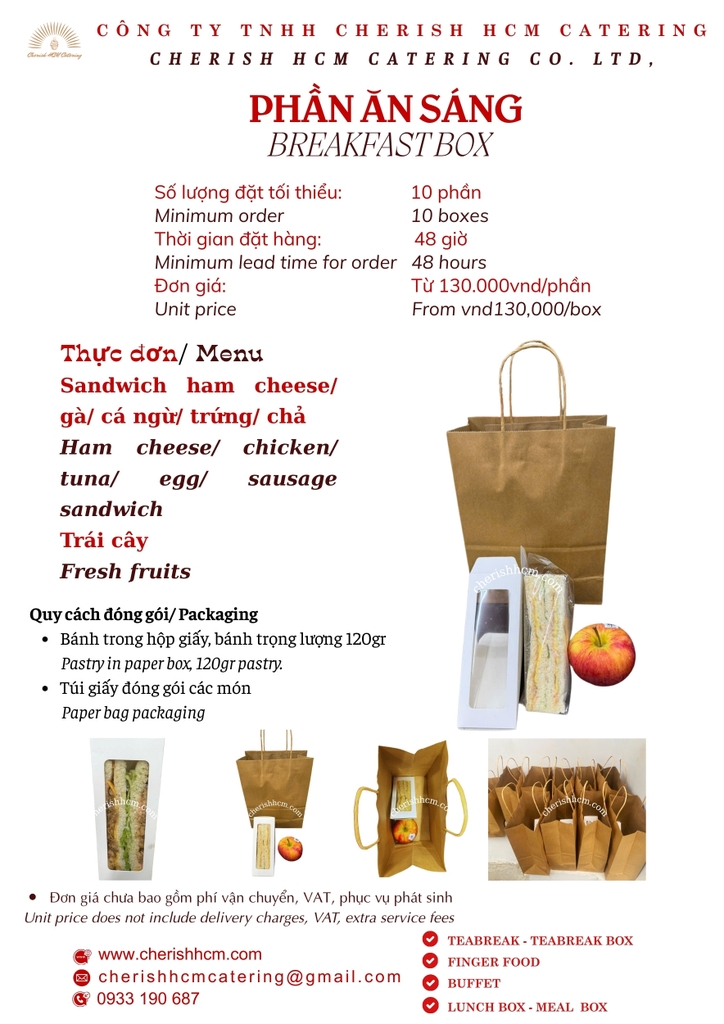Phần ăn Sáng Sandwich và Trái cây/ Fruits and sandwich Breakfast box