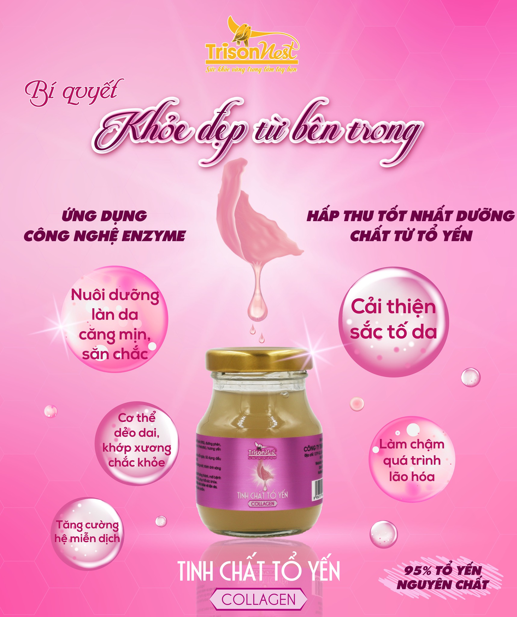 Tinh chất tổ yến - Collagen bổ sung thêm Collagen kết hợp với dưỡng chất từ tổ yến, Sản phẩm sẽ là người bạn đồng hành giúp bạn có thêm năng lượng và cải thiện sức khỏe từ sâu bên trong.