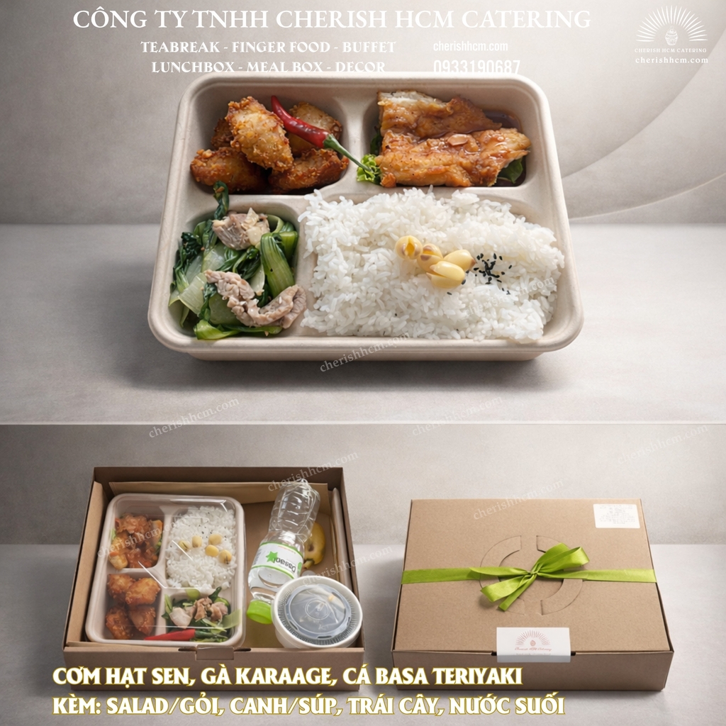 23425 Set Lunch Cơm hạt sen - Gà karaage - Cá basa sốt Teriyaki/Lotus Seed Rice – Karaage Chicken – Basa with Teriyaki Sauce