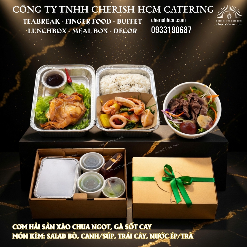 25925 Set Lunch Victorious Cơm Hải sản xào chua ngọt, Gà sốt cay/ Stir-fried Seafood with Sweet and Sour Sauce, Spicy Chicken in Sauce with Rice