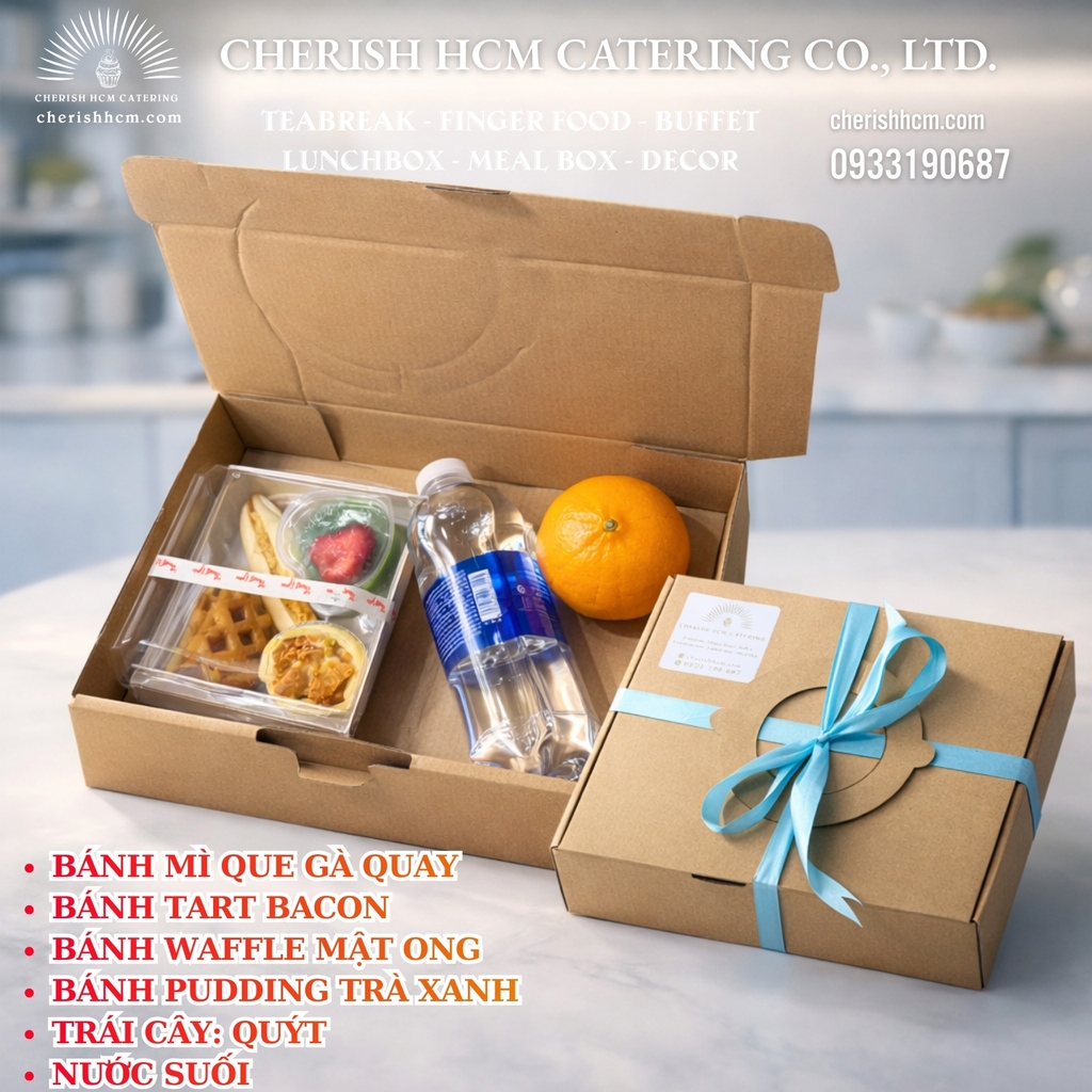 25925 Teabreak Box "Grace Box"- 4 Bánh mặn, ngọt, trái cây, nước suối/ 4 Pastries, Fresh fruit, Pure bottled water