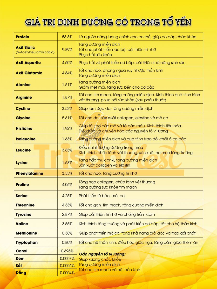 Yến sào có chứa các dưỡng chất cần thiết cho cơ thể như: